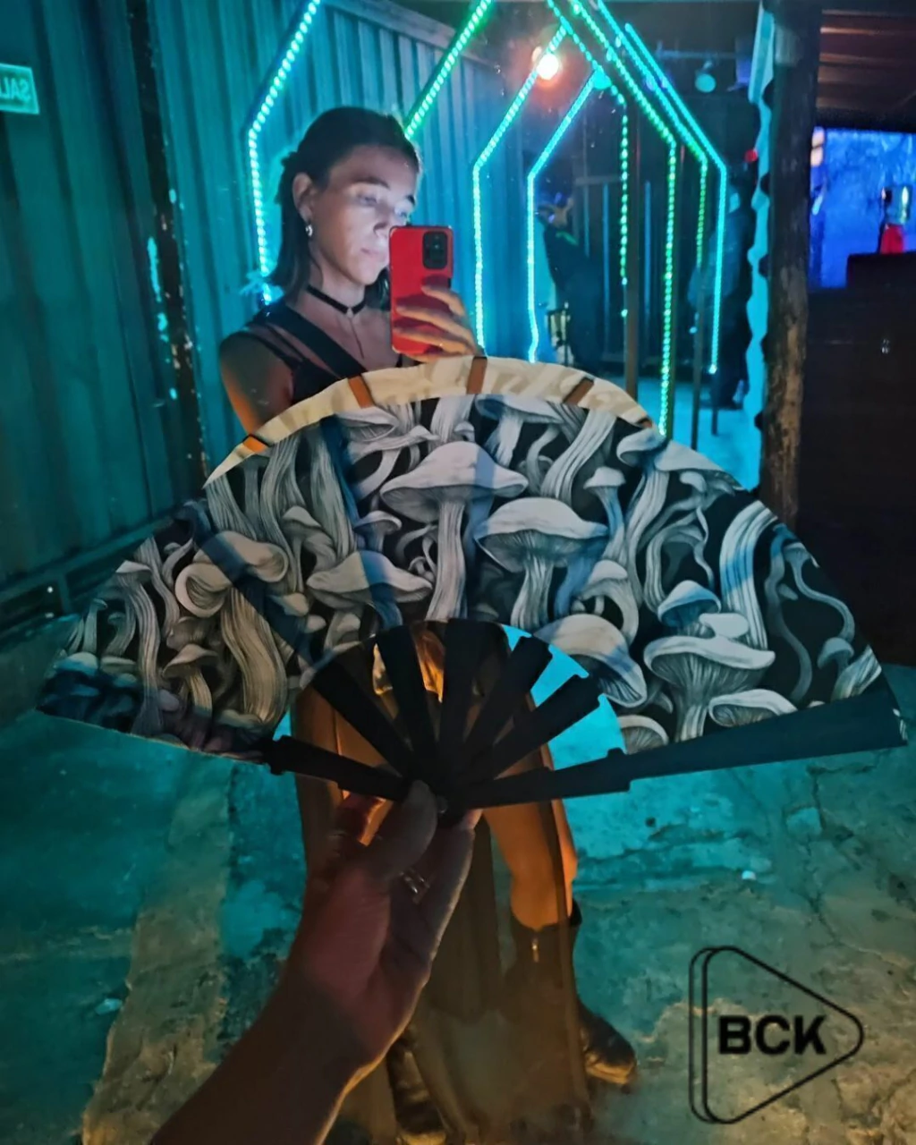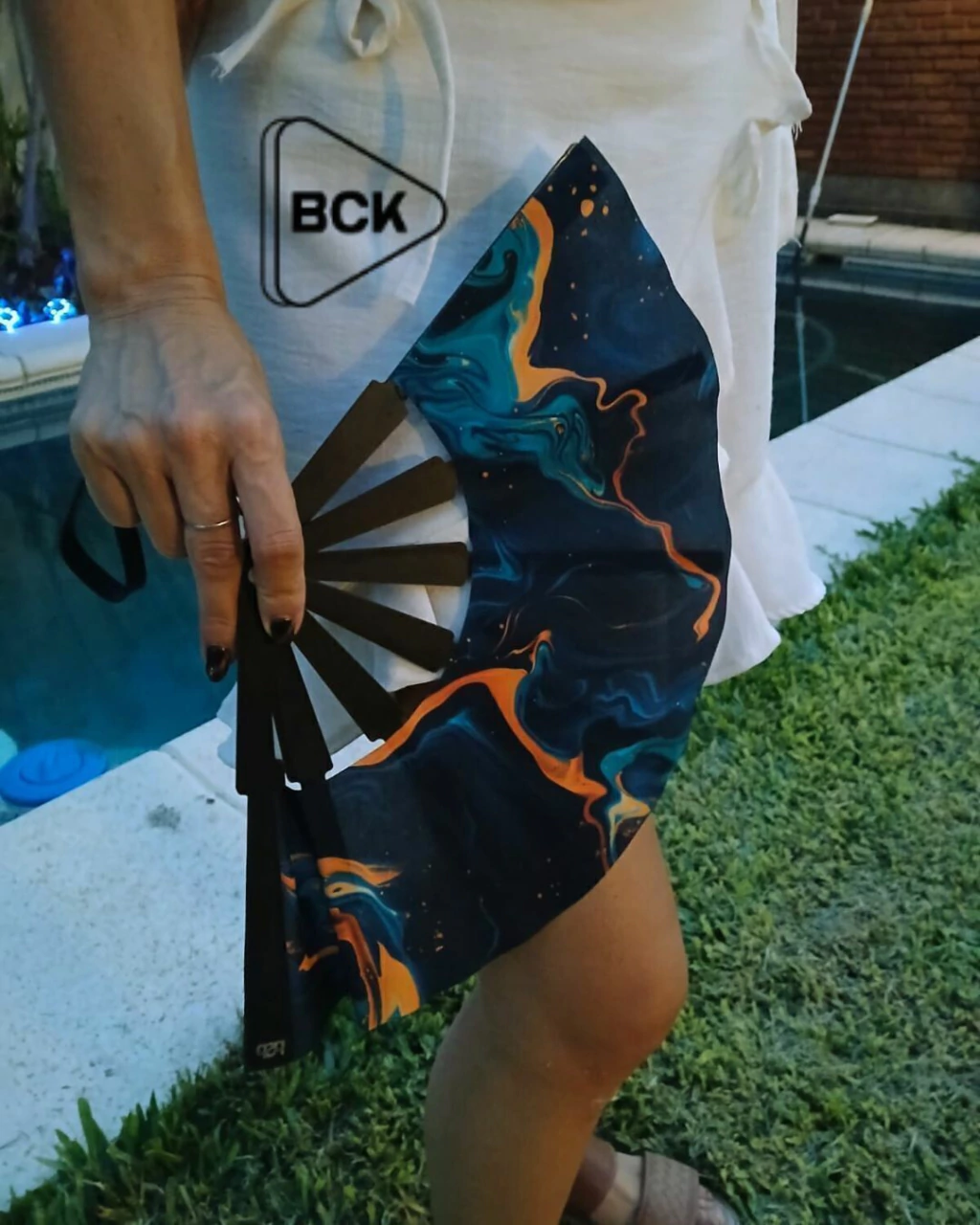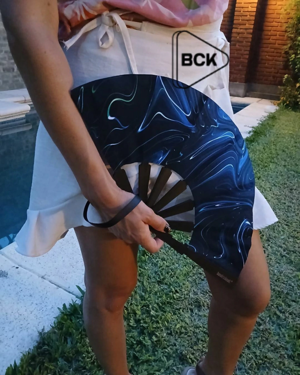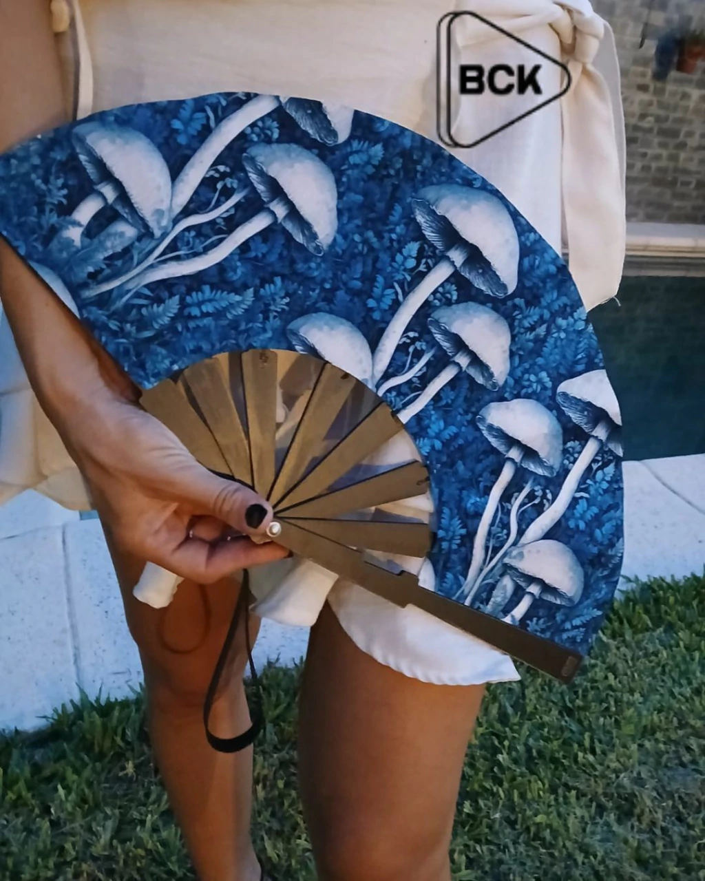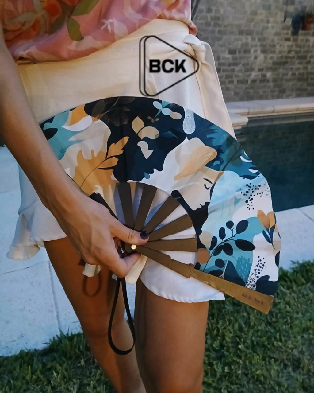 Abanico artesanal de calidad premium. Elaborado en madera y tela sublimada. Incluye Fan Loop con mosqueton para que ko tengas siempre con vos y no se te caiga. Elegancia y funcionalidad en cada detalle.