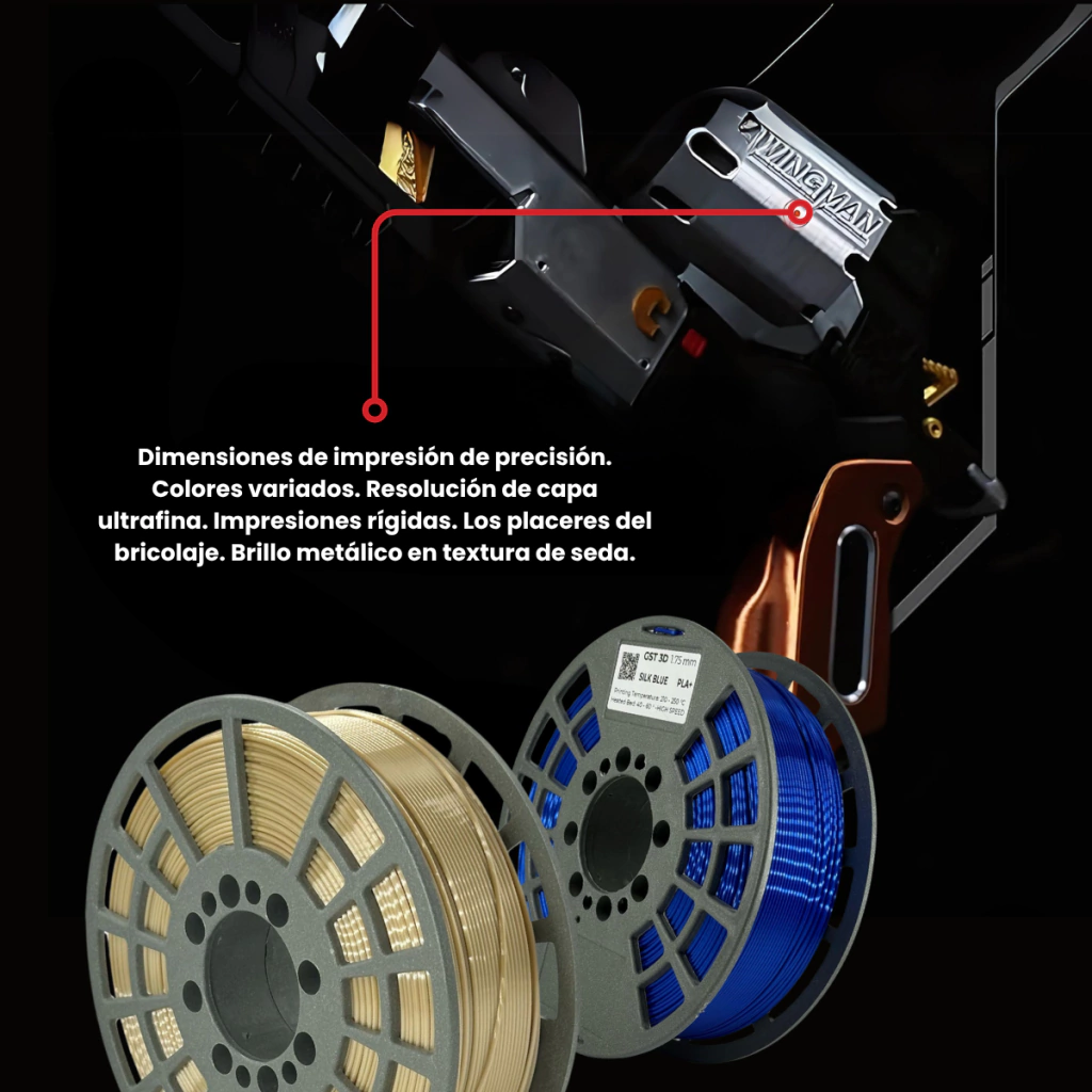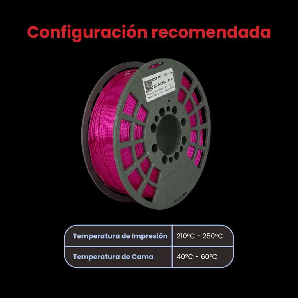 Si buscas calidad, elegancia y un acabado profesional en tus proyectos de impresión 3D, el Filamento SILK de GST3D es tu mejor elección. Este filamento ha sido diseñado especialmente para crear un efecto sedoso y brillante que realza cada detalle de tus diseños, dándoles un toque metálico y sofisticado.