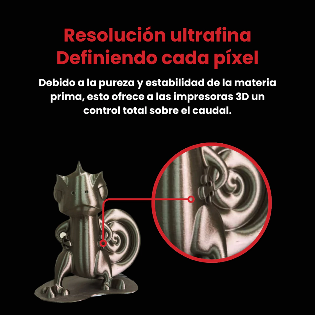 Alta Definición y Detalle: Gracias a su fórmula de alta calidad, este filamento garantiza una excelente precisión en cada capa, logrando impresiones nítidas y detalladas.